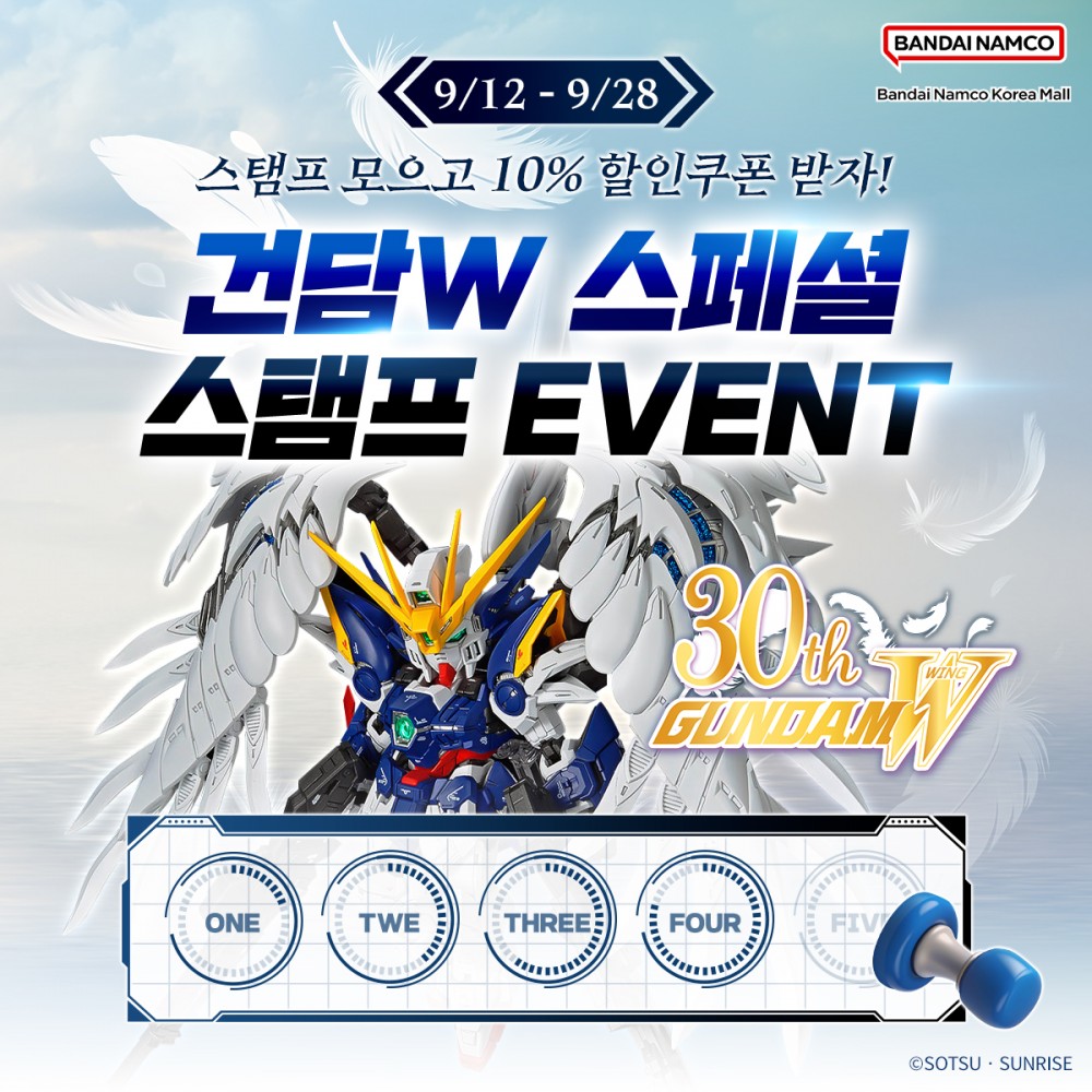 ✅ 건담W 관련 상품 구매 시 스탬프 적립 → 5개 모으면 10% 할인쿠폰을 증정!