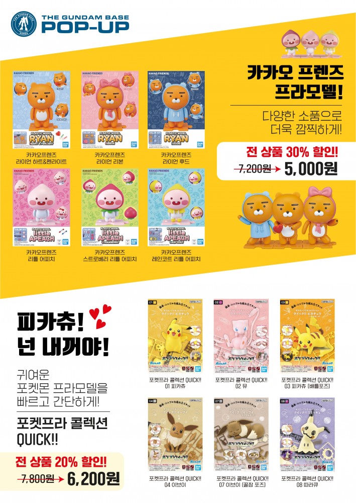 다양한 종류의 건담 프라모델과 애니메이션 캐릭터 프라모델, 한정판 상품들이 준비되어 있으며