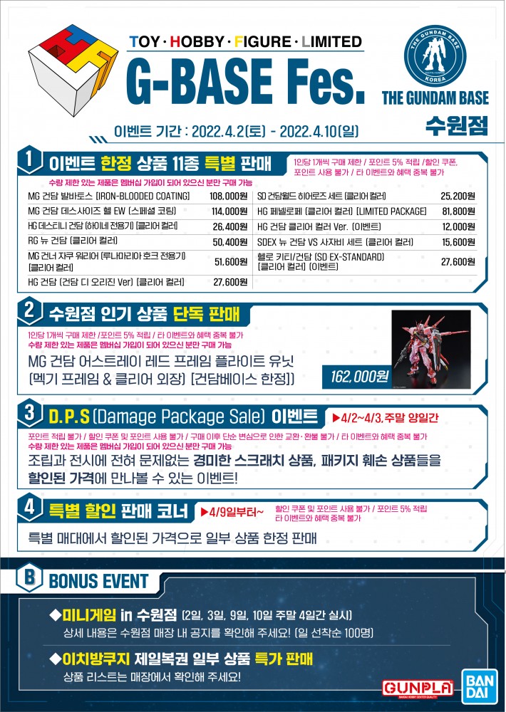 건담베이스 수원점에서 4월2일(토) 부터 4월10일(일) 까지 개최 예정!!