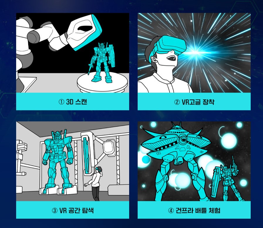 또한 VR 기술과 접목해서, 디지털 공간 안에서 건프라를 타고 출격할 수 있게 됐습니다.