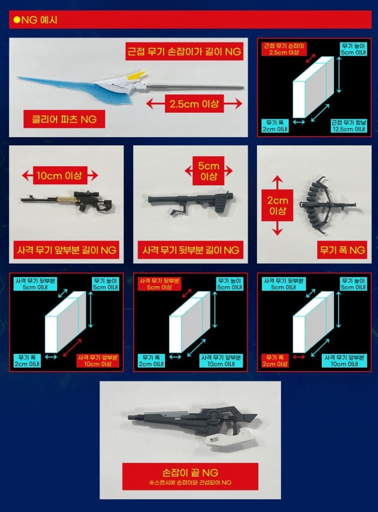 ・상기 규정에 따르지 않은 사양, 크기의 건프라는 사용할 수 없습니다.