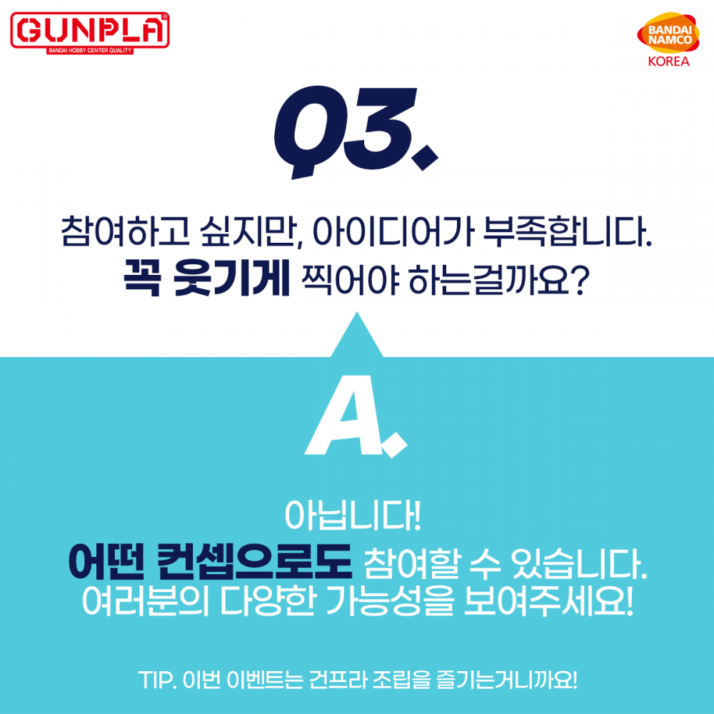 참여방법 : 나만의 건프라를 제작하고 #즐기자건프라 해시태그 필수!