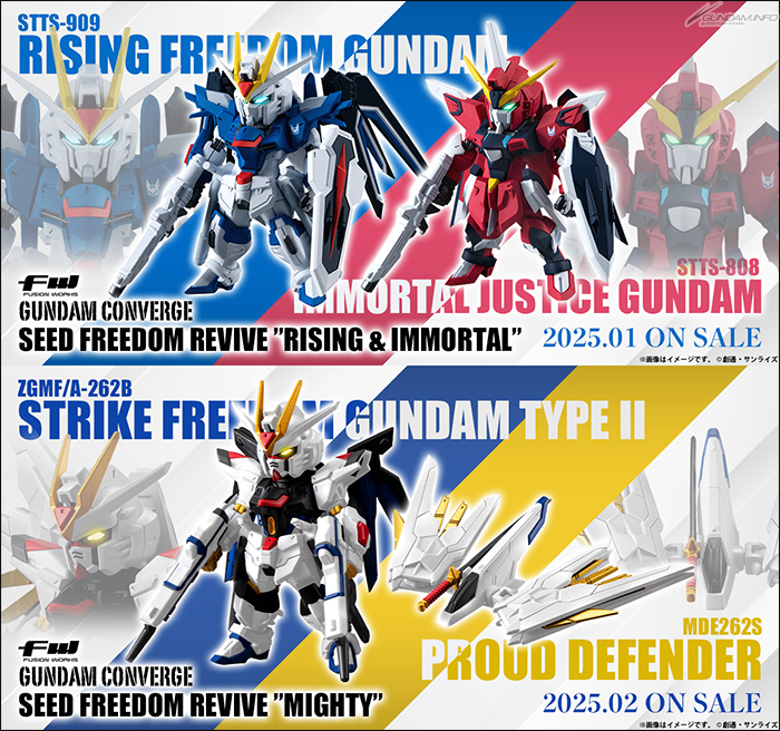「FW 건담 컨버지 ♯24」에 수록된「라이징 프리덤 건담」,「임모탈 저스티스 건담」과 「♯25」에 수록된 「스트라이크 프리덤 건담 이식」, 「프라우드 디펜더」가 각각 세트가 되어 「시드 프리덤 리바이브」로 다시 등장.