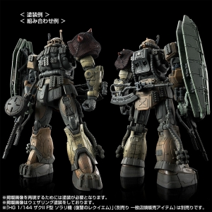 ※무식별형 자쿠 II F형 솔라리 전용기를 재현하기 위해서는 본 상품의 부속 파츠를 조립하지 않은「HG 자쿠 II F형 솔라리 전용기 (복수의 레퀴엠)」(별도 판매) 가 필요합니다.