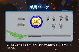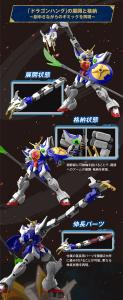 그리고「드래곤 행」의 전개와 격납을 실현하여 극중의 기믹을 재현. 관절부분의 가동축을 탑재하여 어깨 암 의 전개, 격납을 실현함과 동시에 부속된 연장용 파츠를 관절 2곳에 장착하면 신장상태의 재현이 가능합니다.
