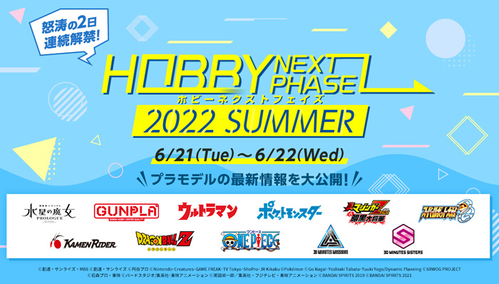 BANDAI SPIRITS 하비 사업부가 전개하는 온라인 이벤트「HOBBY NEXT PHASE 2022 SUMMER」가 6월21일(화)・22일(수)에 개최 됩니다.