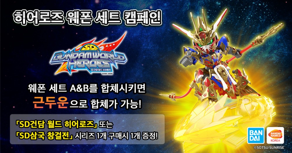 'SD건담 월드 히어로즈'와 'SD 삼국 창걸전' 시리즈의 중 2개 상품을 살 때마다 '히어로즈 무기 세트'를 무료로 드립니다!