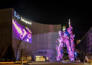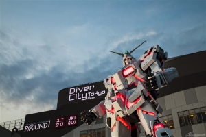 이 곳의 실제 사이즈 유니콘 건담의 입상은 평상시에는 ‘유니콘 모드’를 비롯하여 각 부에 전개된 프레임을 노출시킨 최대 가동모드인 ‘디스트로이 모드’로의 [변신]을 재현. 주간에는 수 차례 [변신]을 하는 것 외에도 야간에는 다이버 시티 도쿄 프라자의 벽면을 사용한 ‘Wall-G’와 연계된 연출을 즐기실 수 있습니다.