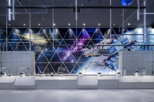이 곳의 입상은 [기동전사 건담 역습의 샤아]에 등장하는 [RX-93 뉴건담]을 원형으로 하면서도 새롭게 롱 레인지 핀 판넬을 장착한 [RX-93FF 뉴건담]. [기동전사 건담] 시리즈의 총 감독 토미노 요시유키씨의 감수를 통해 채도가 높은 트리 콜로의 마킹을 채용하고 있습니다.