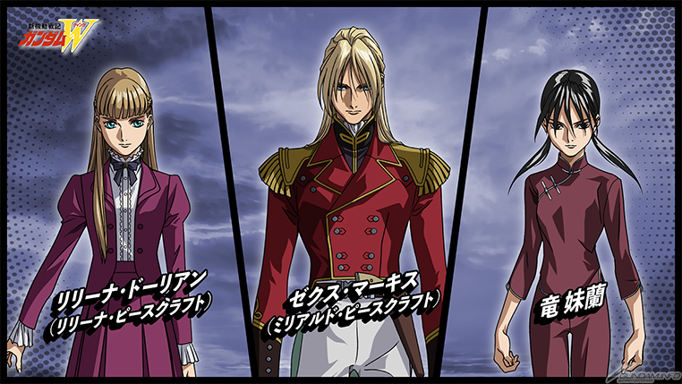 히이로 유이를 포함한 건담 파일럿 5명, 리리나 도리안, 젝스 마키스 뿐만 아니라 애니메이션 본편에서 등장하지 않았던 창 우페이의 아내 「메이란」도 공개.